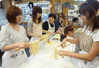 自分で作ったうどんをその場で食べられます。約60分であなたもうどん職人に!