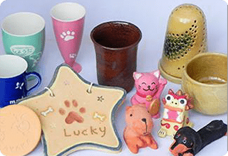 電動ろくろや手びねりが予約なしで体験できます。わんこプレートも人気です。